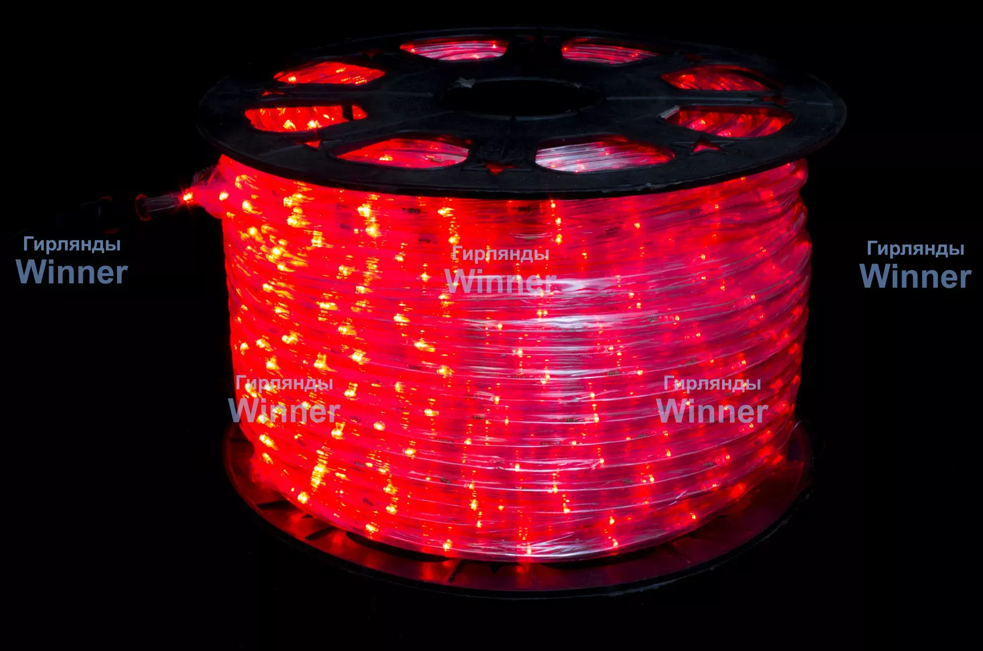 Дюралайт круглый _ 10.5 мм., 220V, 3-жилы, красные LED лампы 24 шт на 1 м., бухта 100 м, силикон, Winner (05.100.10,5.24R)