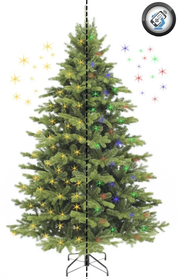 Непременное достоинство данной елочки - это конечно же наличие встроенной гирлянды теплого-белого цвета и мультицвета которые переключаются пультом дистанционного управления. Вам не придется тратить время при украшении елочки на правильное расположение гирлянды, чтобы елочка была со всех сторон красавицей. За Вас это сделали первоклассные дизайнеры. На каждой веточки прикреплены лампочки, а вот провода совсем не видно, что, кстати, очень важно. Вам при сборке останется распрямить веточки и включить в розетку гирлянду. И вот она, красавица елочка, светится и дарит Вам праздничную атмосферу.