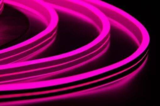 Гибкий неон двусторонний, бухта 50 м, 24В, 8х16 мм – эластичный шнур из матового поливинилхлорида грибовидной формы. На подложке в нижней части внутри шнура расположена лента с плотно напаянными на нее светодиодами SMD 2835, что дает равномерное свечение по всей длине неона.