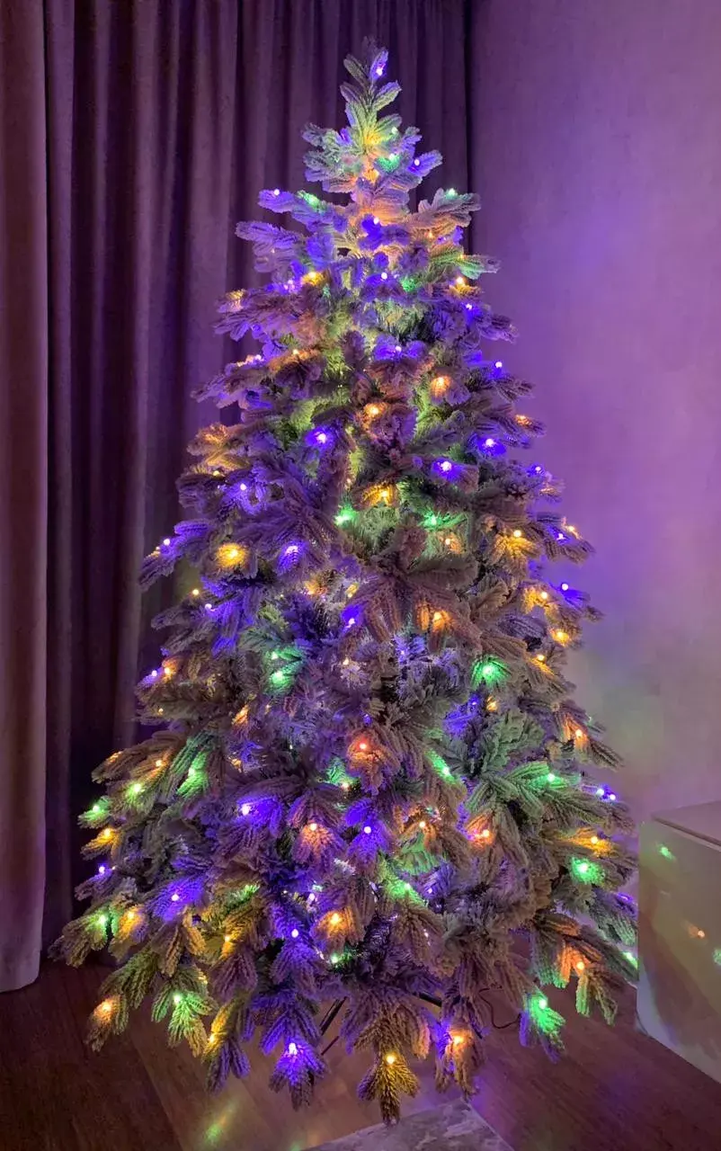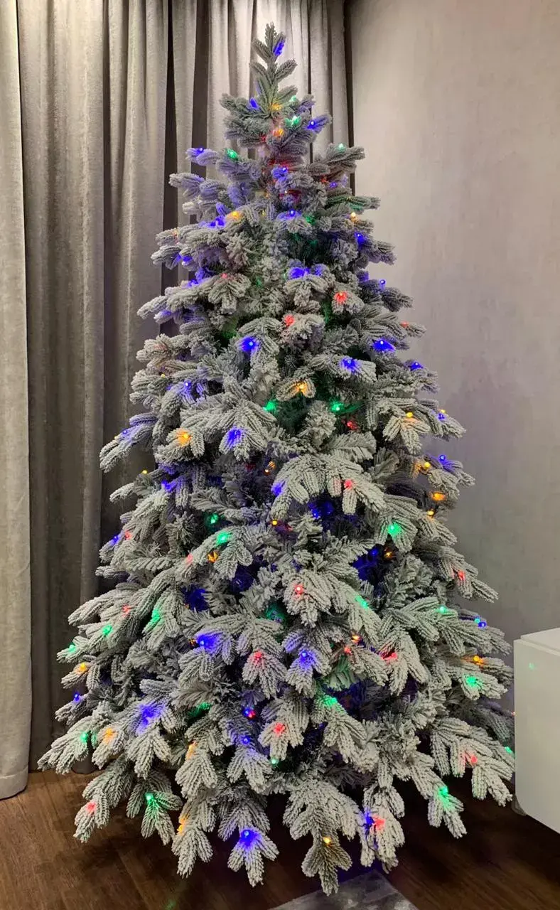 Уникальная заснеженная елка Аляска со встроенной Led гирляндой премиум класса - несомненная топ модель нашего ассортимента. Она искусно создана нашими мастерами, каждая веточка в точности напоминает настоящий еловый лапник, а искусственный снег покрывает их принося ощущение морозного леса. Одна из главных особенностей модели, является встроенная разноцветная Led гирлянда, которая совмещает в себе два полноценных самостоятельных режима свечения - разноцветный (мульти) и теплый белый, оба имеют 8 режимов динамики, также есть режим статического свечения.