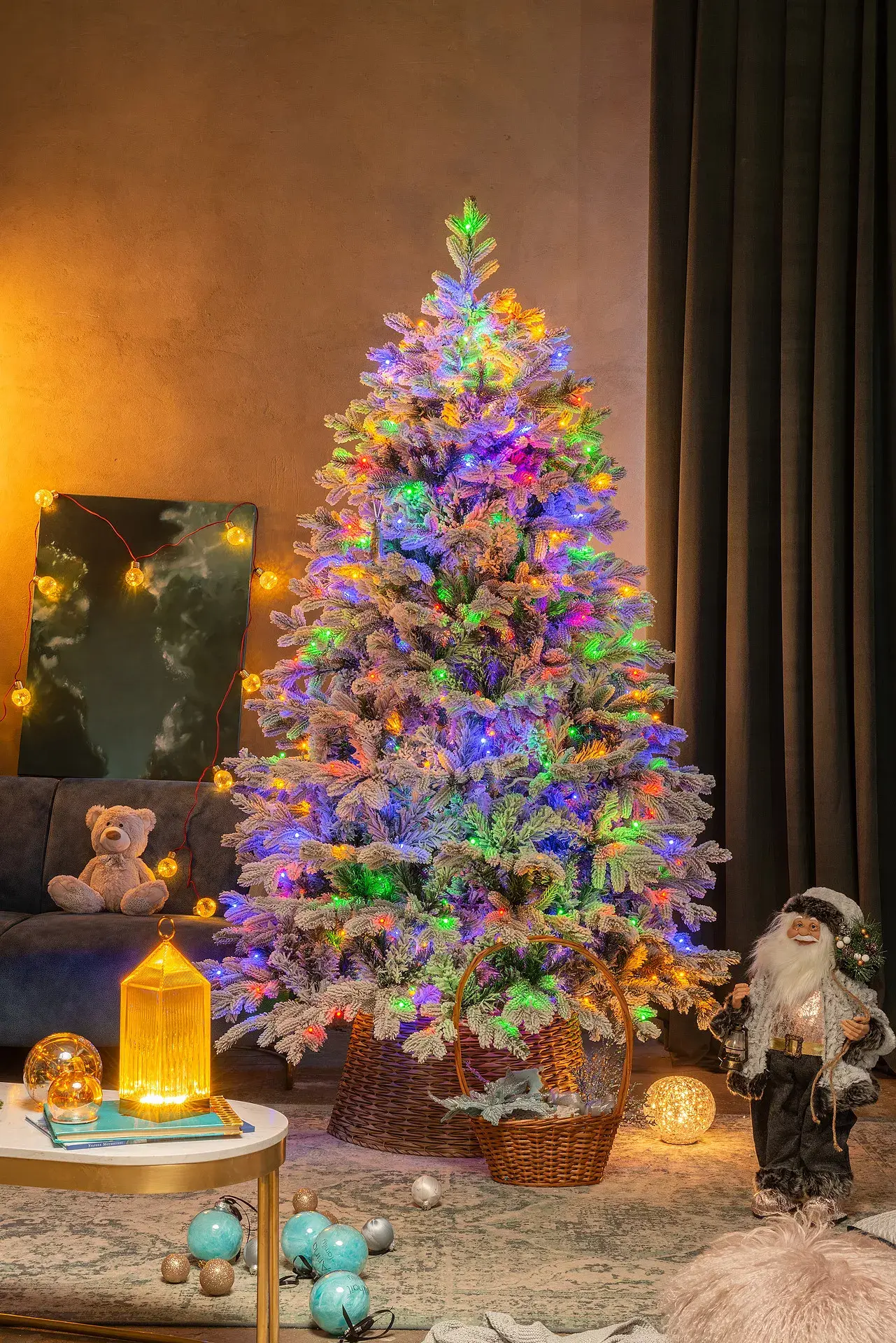 - Встроенная электрогирлянда 2 в 1 (теплый белый и разноцветный)