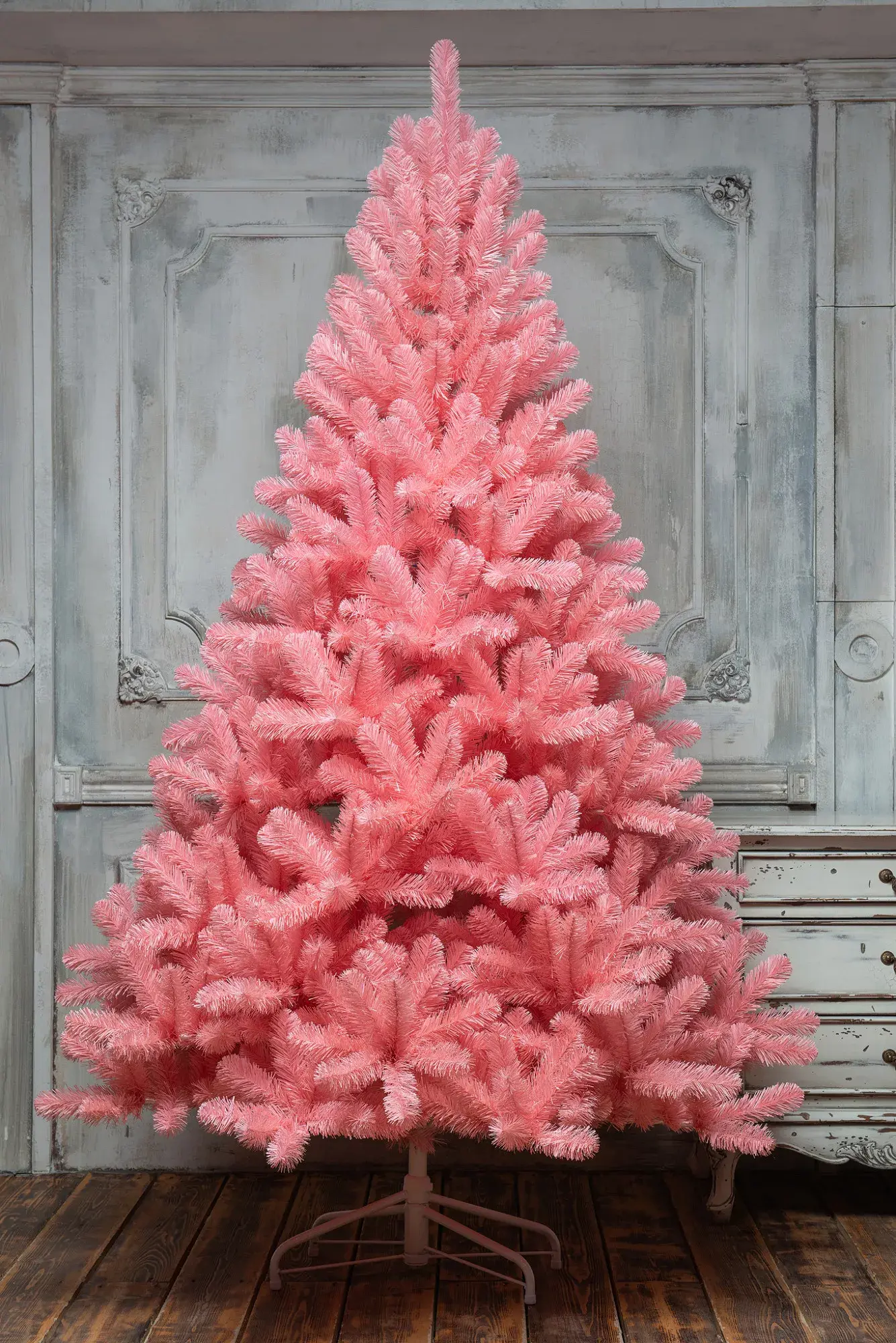 Розовые елочки уже несколько сезонов удерживают лидирующие позиции среди деревьев нестандартных цветов, и устраивают на рынке настоящий бум! Для розовой елки Фламинго подойдут элегантные елочные игрушки в антикварном стиле, украшенные кружевом или серебристыми блестками. Подбирайте шарики серебристого или белого цвета – возможно, настоящие винтажные экземпляры, найденные на чердаках и антресолях. В дополнение к ним можно припорошить ветки искусственным снегом. Большого числа игрушек для нее не требуется, напротив, переизбыток способен лишь навредить. Она прекрасно подойдет для украшения вашей квартиры или загородного дома, офиса, торгового зала, салона, ресторана, кафе или гостиницы.