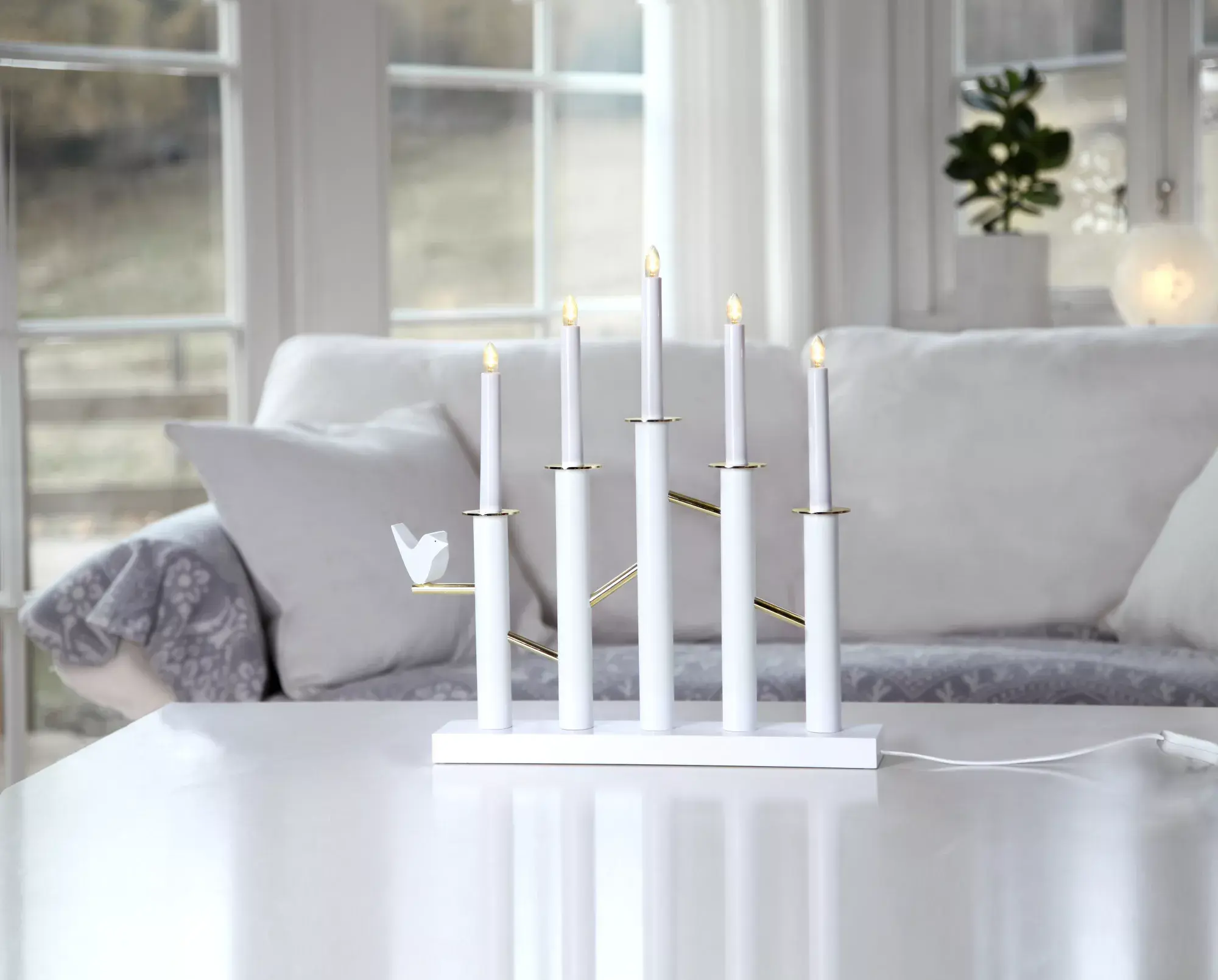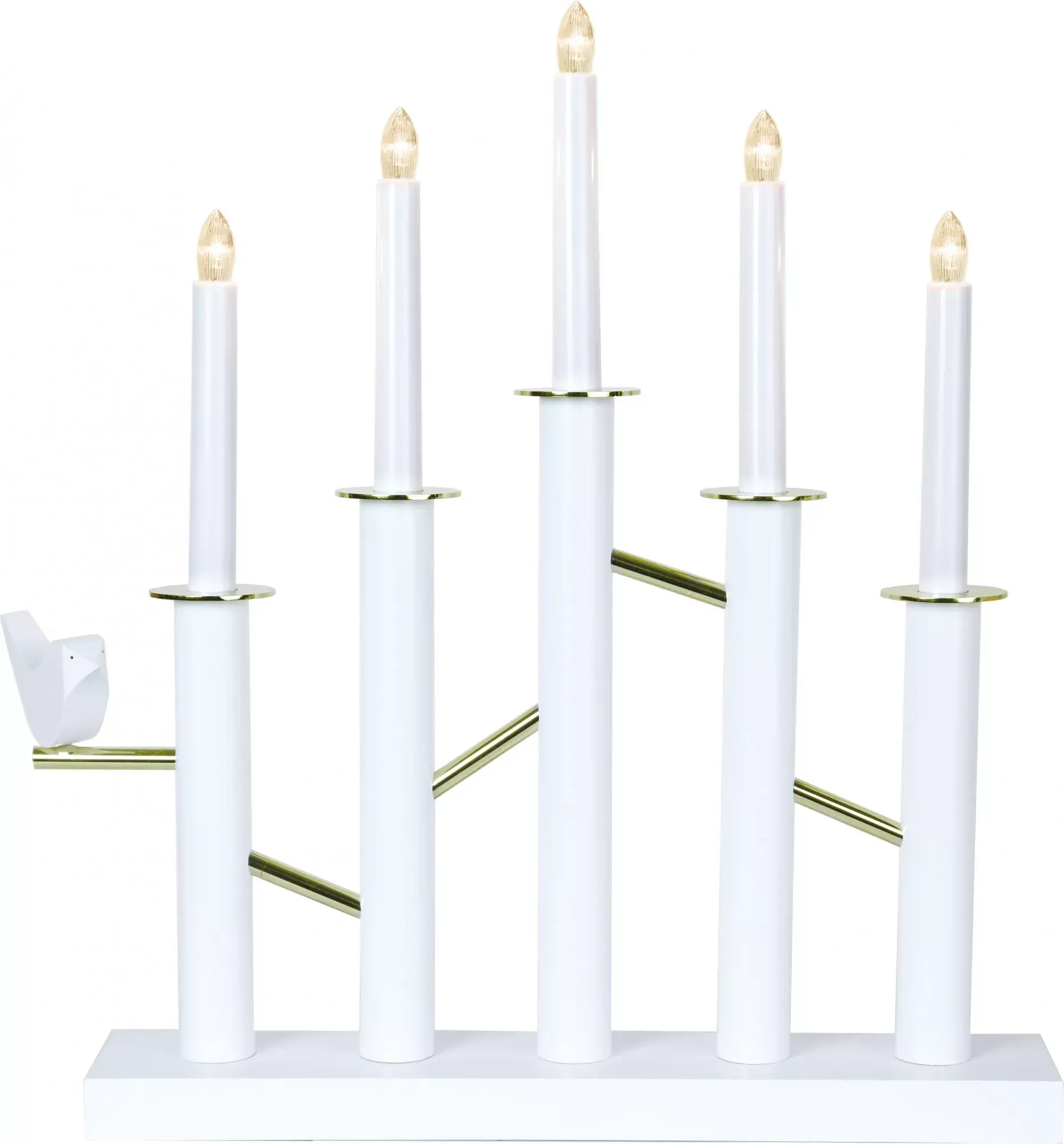 Если вы еще не нашли свою половинку, впустите в жилище птицу любви! Светильник «Птица любви» от Star Trading – это роскошный ансамбль из пяти белоснежных свечей из металла и с тоненькими золотистыми перегородками. А на одной из свечей скромно притаилась маленькая птичка. Она станет для вас символом самой чистой любви на свете, и в наступающем году вы обязательно будете счастливы и любимы! Некоторые элементы светильника выполнены из дерева, что приближает его к эко-стилю. Его параметры: высота – 44 см, ширина – 42 см, и такая композиция станет более приемлемым вариантом для просторного помещения. Работает от электросети.