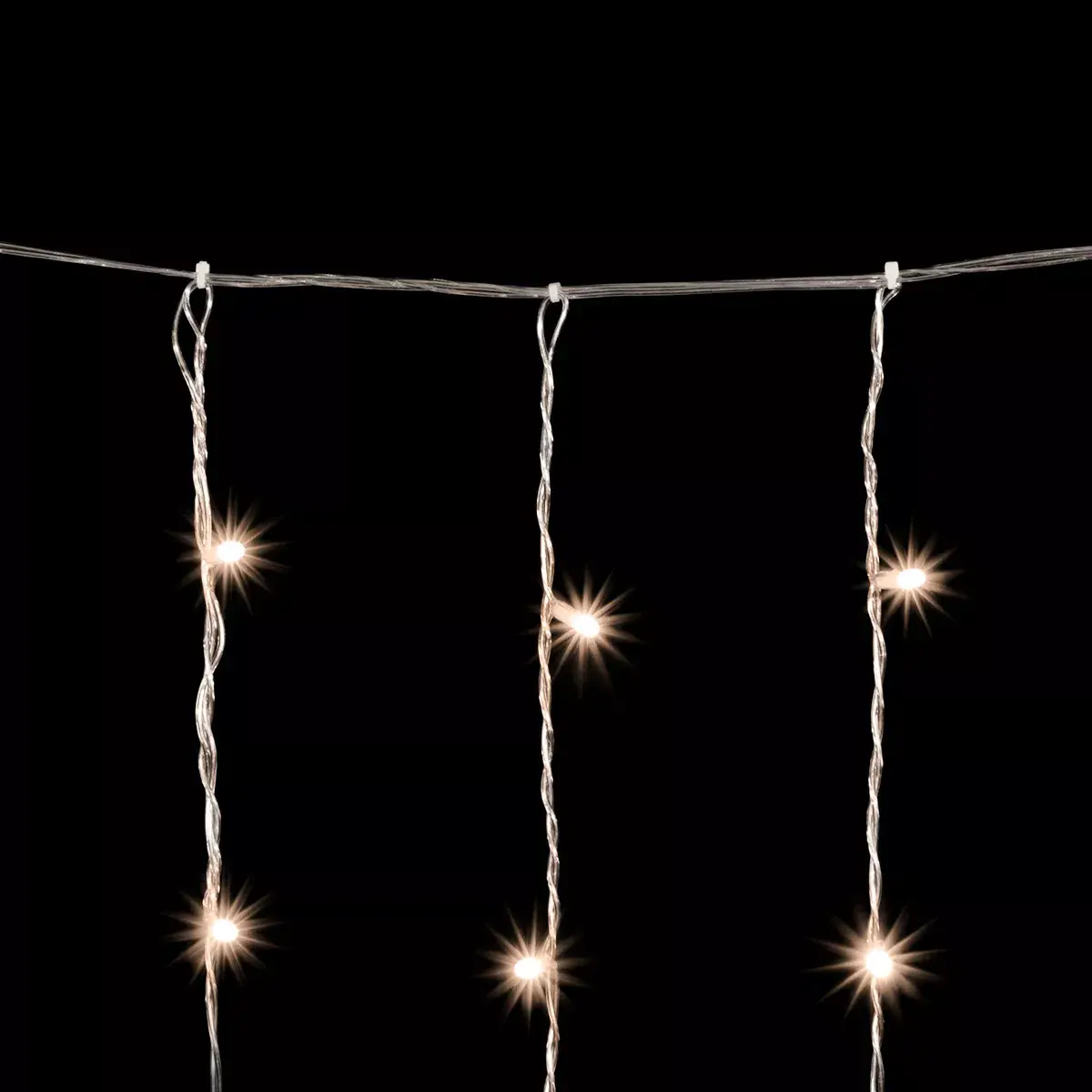 Хотите предать своему празднику дополнительной романтичности? Не знаете чем украсить внутренние помещения? Тогда облегченный светодиодный занавес это то, что вам нужно. Благодаря небольшому весу, всего 947 грамм, его можно закрепить на карнизе, а прозрачный провод позволит использовать занавес на различных цветовых поверхностях. Особенностью модели является мерцание, мерцает каждый 5 светодиод. Благодаря встроенному коннектору и отсутствию дополнительных аксессуаров для подключения, можно соединить до 5 занавесов одной модели. Степень защиты IP20 позволяет использовать этот занавес только в помещениях.